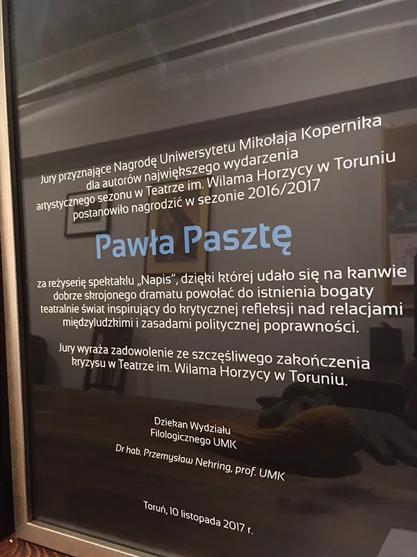 premiera 13. maja 2017, Teatr Horzycy w Toruniu, scena Na zapleczu